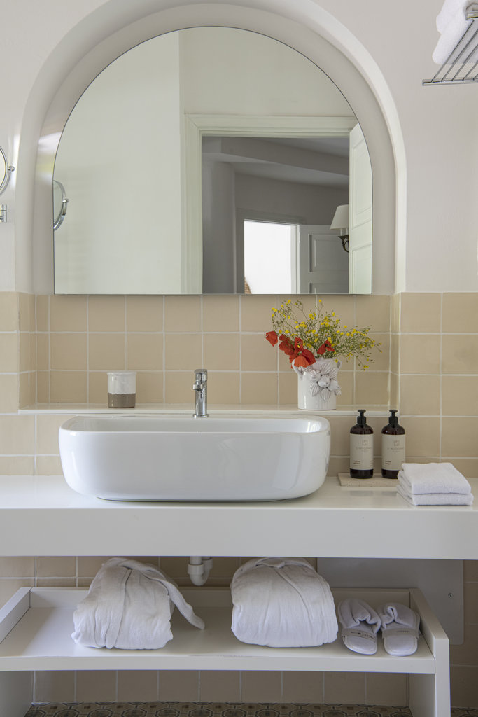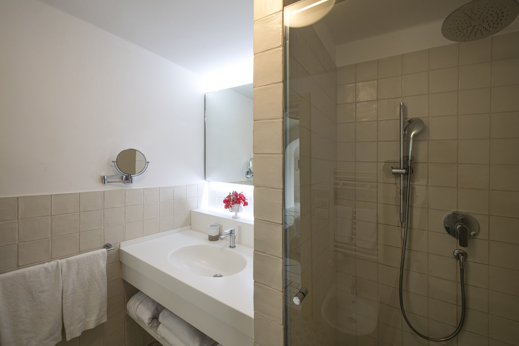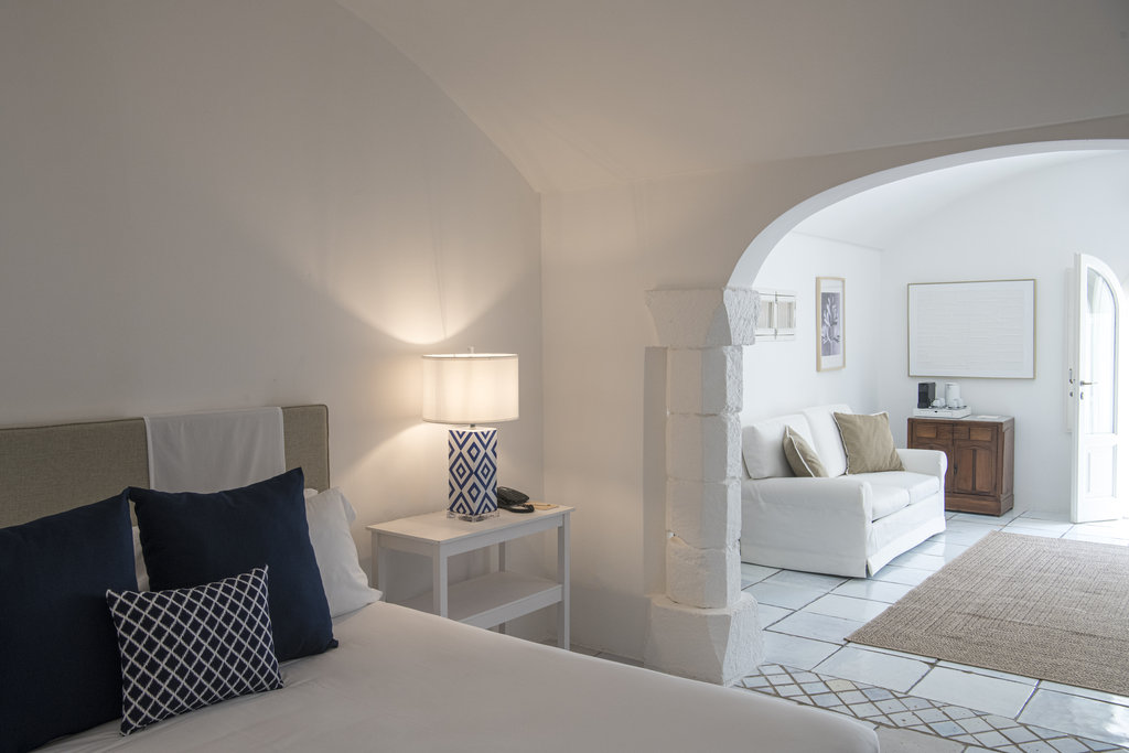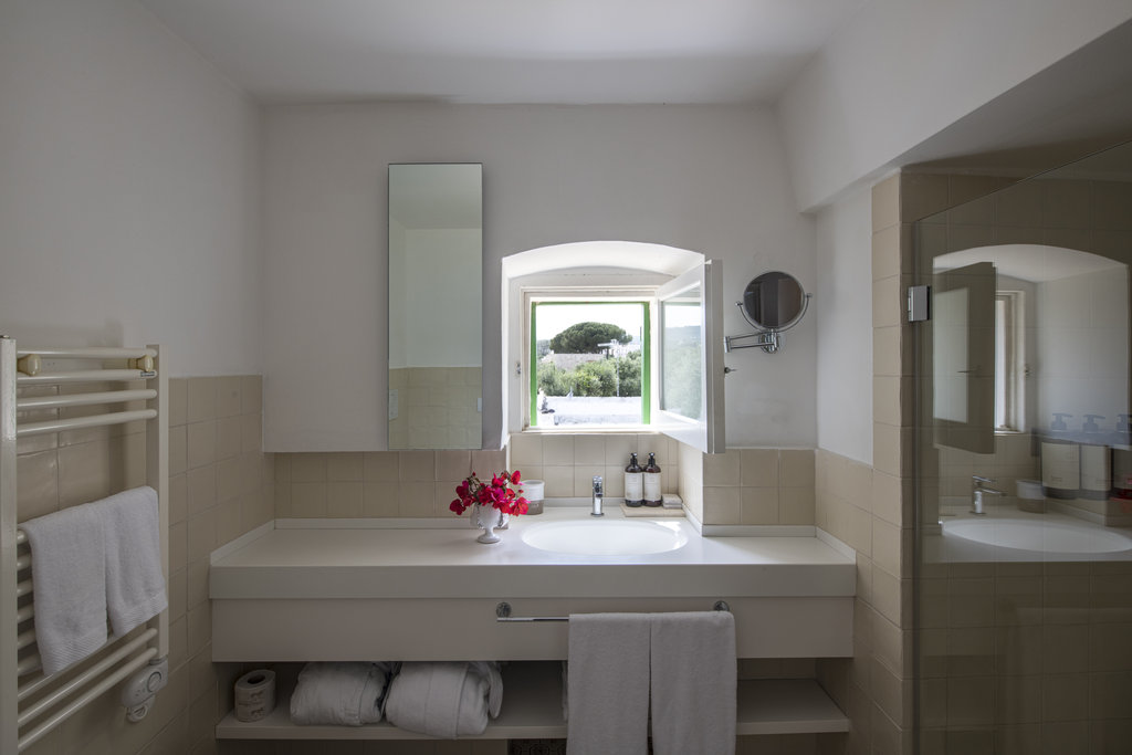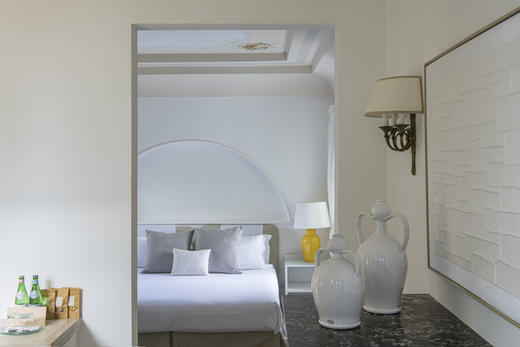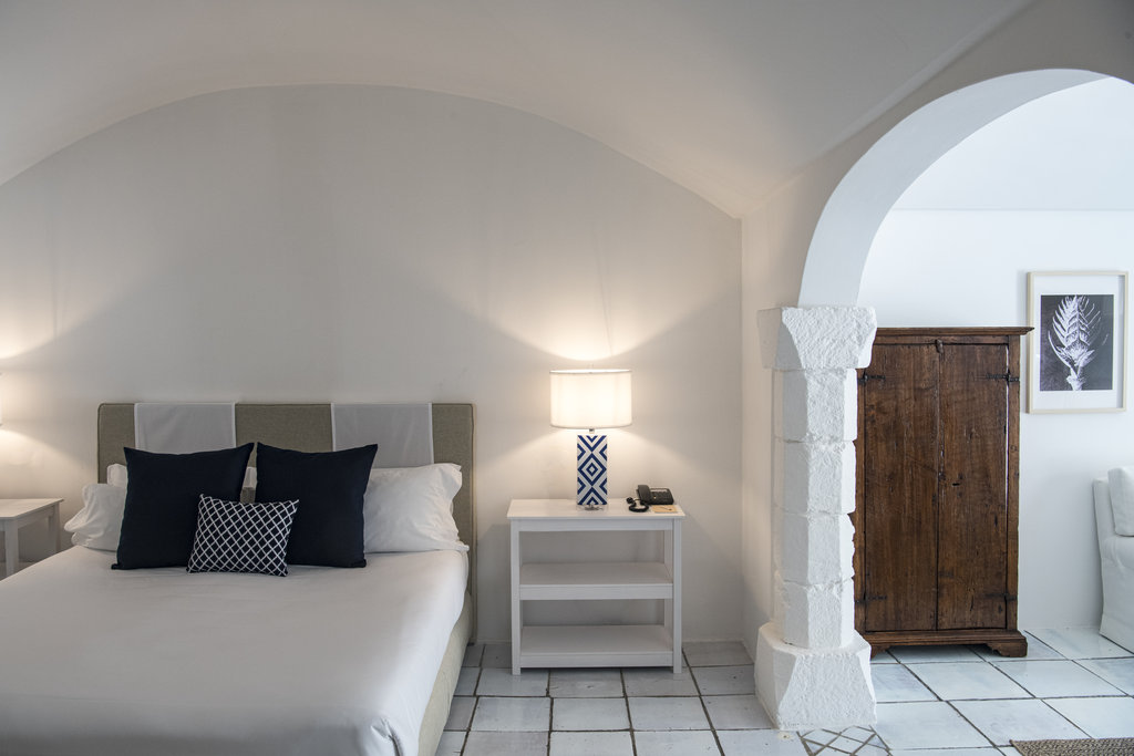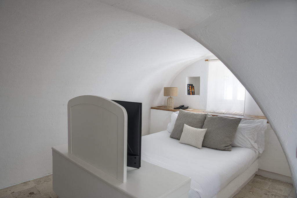酒店设有室外泳池和宁静的水疗中心,散发着现代意大利度假胜地的气息。但是,盘旋的墙壁却昭示着它过去曾是一座坚固的农舍,用于保护普利西亚丰富的物产免于被萨拉森人侵袭。如今,它敞开大门,桌上摆放着主厨使用多种酒店自种食材烹制而成的当地美食,静待游客的到来。这种过去与现在的融合也体现在了客房之中,白色的墙壁变成古董家具和原创艺术品的时尚画布。