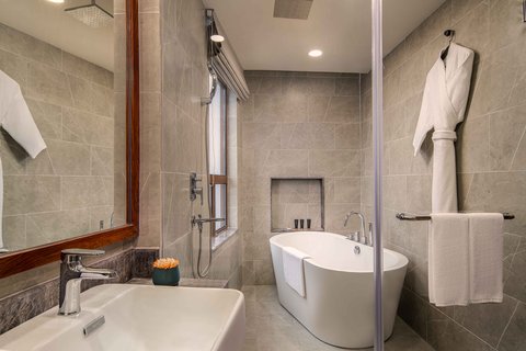 酒店内部,尼泊尔的文化遗产显得格外引人自豪。每间客房和套房都是对民族多样性的一次致敬,装饰灵感汲取自该地区的三个主要社区。在代表平原的“塔赖”房间中,泥土色调与陶器艺术营造出一种质朴而温馨的氛围。中间楼层则向多山的“帕哈德”地区致敬,传统木制家具与独立浴缸共同营造出一种奢华的体验。再上一层,是展现夏尔巴族大胆色彩和活泼图案的“喜马”套房,房间内还设有全景观景窗和按摩浴缸,让您在享受放松的同时,也能饱览壮丽的山景。酒店的名字“瓦纳巴斯”源自每个楼层里展示的一系列手工艺品以及酒店内的博物馆。这里收藏着从永恒的铜制器皿到勇敢的山地探险者使用的早期探险装备,构成了一座艺术、工艺和历史的宝库,等待着您的探索。